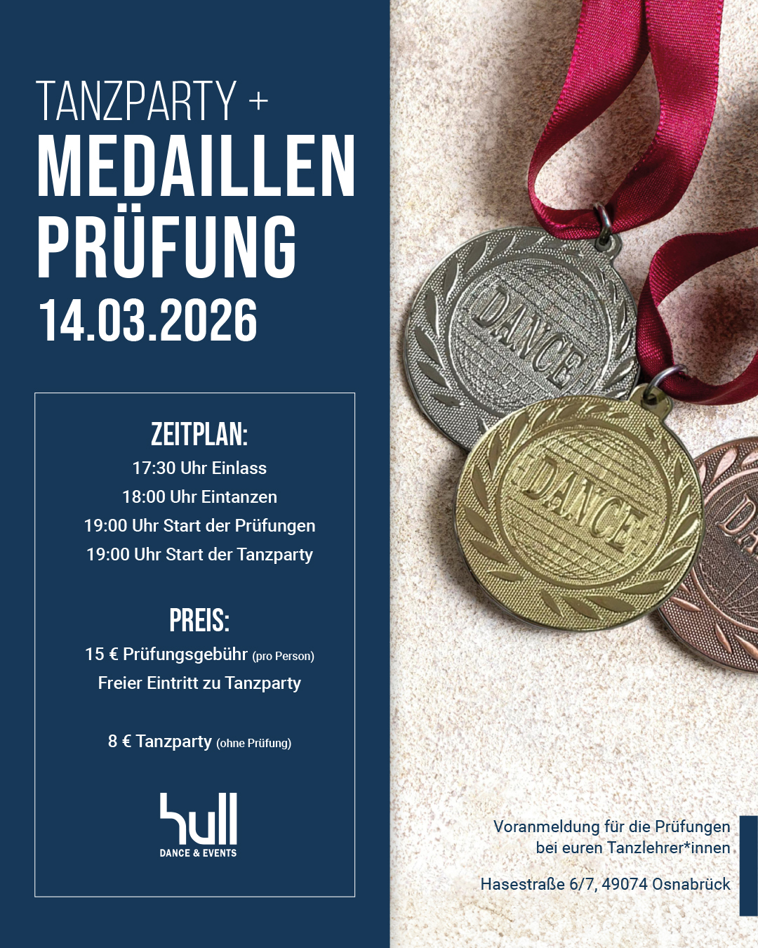 Prüfungsgebühr: 20 € p. P. / Freier Eintritt für Tanzparty